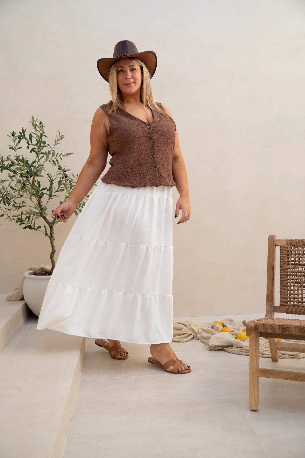 Confeccionado en tela Hawai, ideal para quienes buscan un estilo fresco y sofisticado. Presenta un escote en V y cierre con botones que aportan elegancia y comodidad.