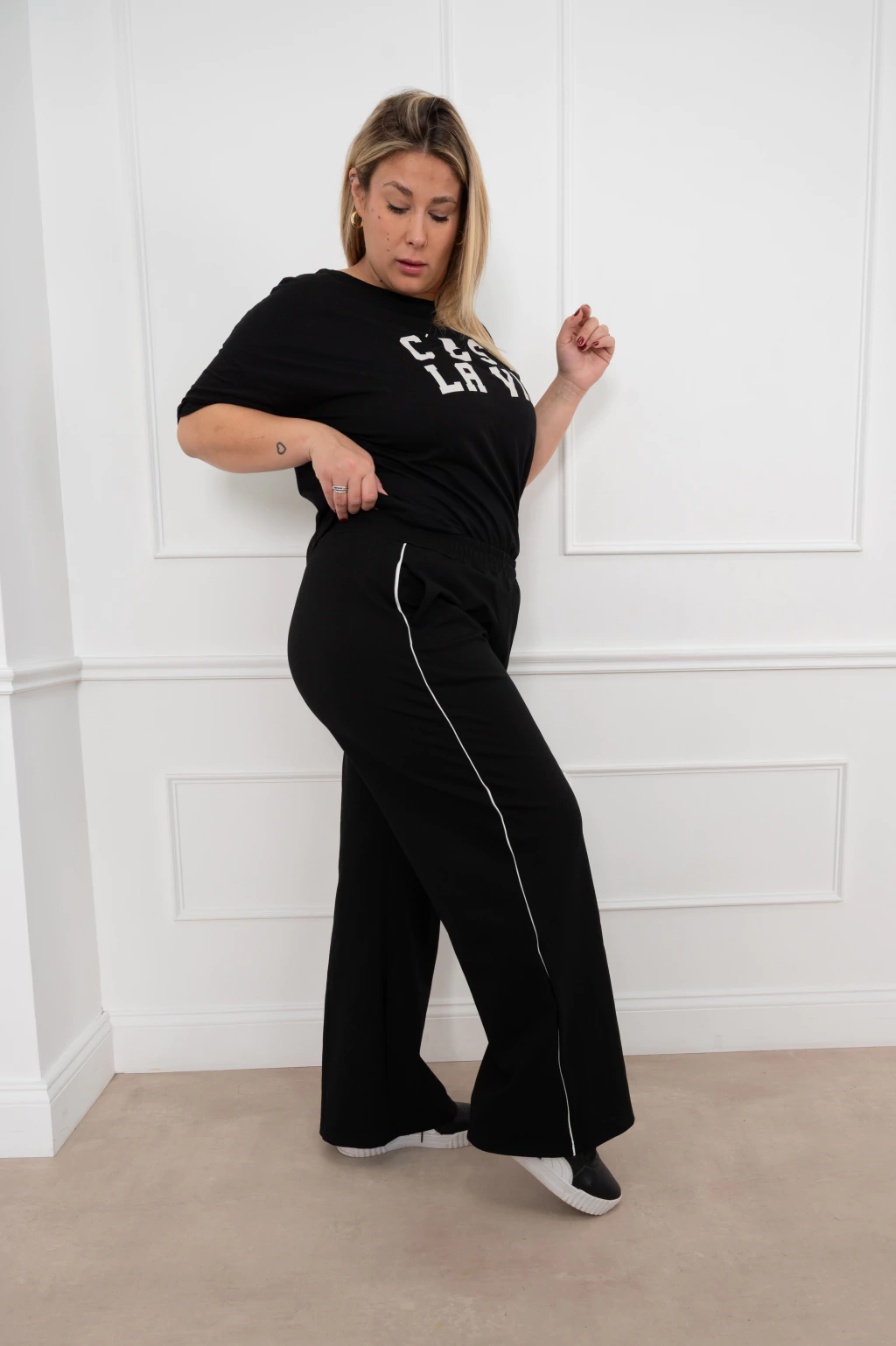 Descubre el Pantalón Palazo Elastizado de Punto Roma, la prenda que combina comodidad y estilo en un solo diseño. Confeccionado en punto roma, este pantalón se ajusta perfectamente a tu silueta gracias a su elasticidad, brindándote libertad de movimiento y un look impecable.