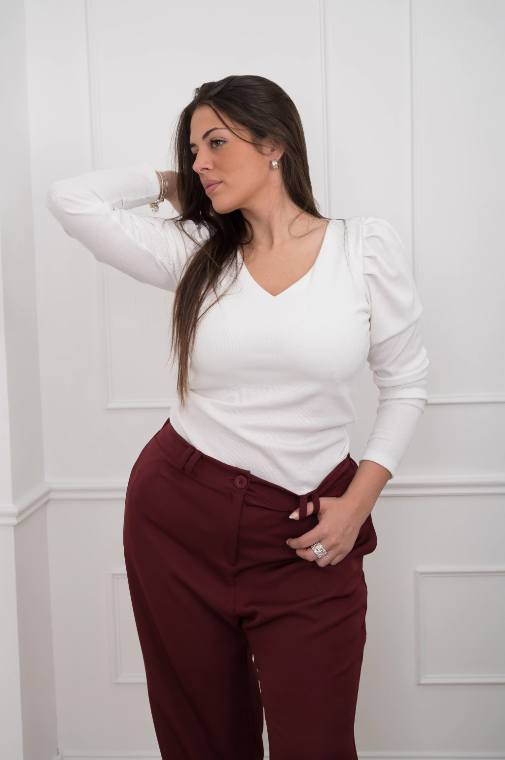 Remera Elastizada de Morley Manga Larga Princesa, Escote en V